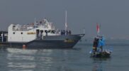 Ditpolairud Polda Jatim Bersama Nelayan Kibarkan Bendera Merah Putih di Selat Madura
