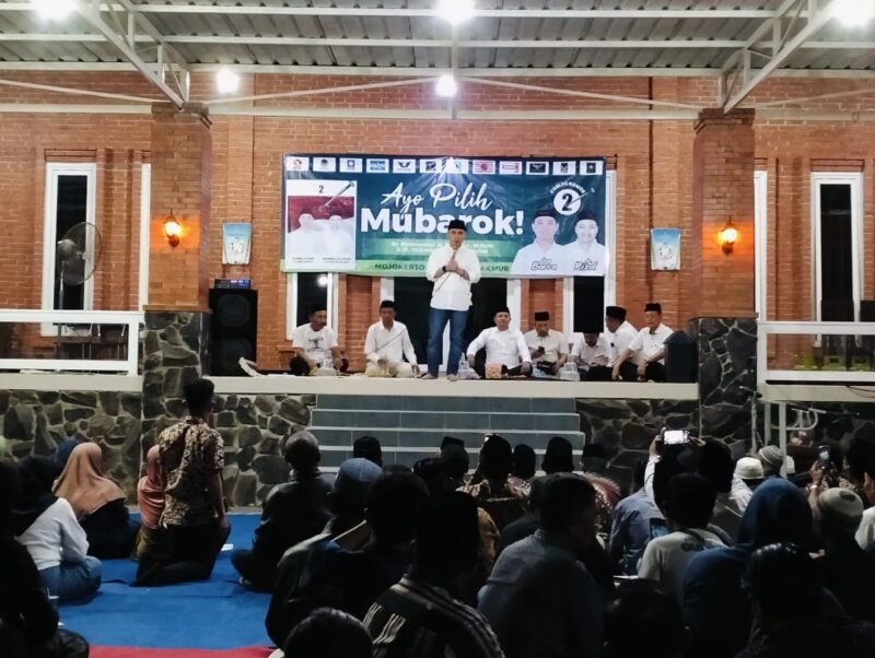 Dengan diselingi yel yel dan lagu khas jingle Mubarok, Gus Barra juga menyampaikan permohonan doa dan dukungan pada warga yang hadir, agar di pilihan Bupati – wakil Bupati Mojokerto, 27 November 2024, Pasangan Mubarok bisa meraih kemenangan, dengan perolehan 90 prosen suara.