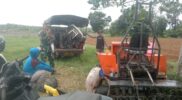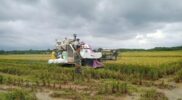 Menggunakan Combine Harvester Babinsa Kodim 1009/Tla Bersama Petani Panen Padi di Kebun Raya Kintap