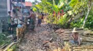 Satgas TMMD ke-125 Kodim 1007/Banjarmasin Bersama Warga Lanjutkan Pemasangan Galam untuk Jalan Utama di Mantuil