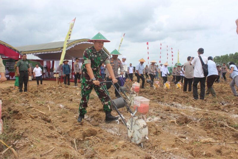 Tanah Laut – Komandan Distrik Militer (Dandim) 1009/Tanah Laut Letkol Inf Indar Irawan, S.E., M.Han., menghadiri acara penanaman jagung serentak Kuartal III dan penanaman jagung di lahan perhutanan sosial yang diselenggarakan oleh Polres Tanah Laut, bertempat di Desa Sabuhur, Kec. Jorong, Kab. Tanah Laut, Rabu (09/07/2025).