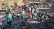 Petugas bersama warga setempat membongkar bangunan tersebut, lalu mengumpulkan sisa kurungan ayam dan material lainnya untuk dibakar.