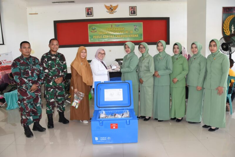 BARABAI-Dalam rangka menyambut HUT ke-78 Persit Kartika Chandra Kirana tahun 2024, Persit KCK Cabang XXV Dim 1002 dan Persit Cab.XXXIV Yonif 621 melaksanakan bakti sosial donor darah bertempat di Yonif 621/Mtg Jalan Printis Kemerdekaan Desa Benawa Tengah kec. Barabai Kabupaten Hulu Sungai Tengah. Rabu (21/02/2024).