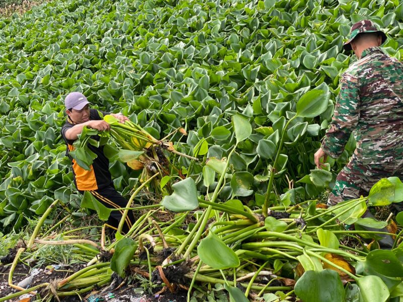 SIDOARJO – Antisipasi hujan deras yang dapat mengakibatkan melubernya air Sungai Gebang, jajaran Forkopimka Sidoarjo Kota bersama para relawan dan masyarakat melakukan kerja bakti bersama bersihkan sampah dan enceng gondok, Sabtu (28/12/2024).