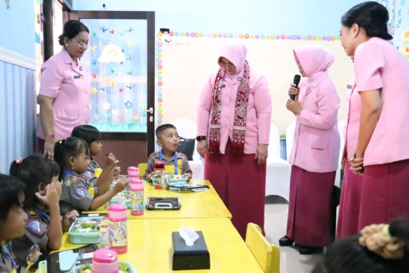 Kota Mojokerto – Wujud dukungan terhadap program pemerintah yaitu pemberian makan bergizi gratis (MBG) bagi para pelajar, Ketua Pengurus Yayasan Kemala Bhayangkari (YKB) Daerah Jawa Timur Ny. Ade Imam Sugianto, melakukan kunjungan ke TK Kemala Bhayangkari 84 Kota Mojokerto, Rabu (12/2/2025).
