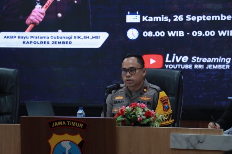 JEMBER – Kapolres Jember AKBP Bayu Pratama Gubunagi bersama Komandan Kodim 0824 Jember mengikuti acara dialog interaktif luar studio bersama RRI regional Jember.