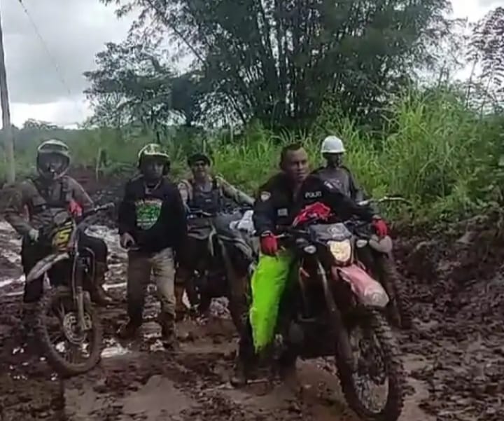 Meskipun hujan dan jalan yang penuh lumpur ,Tim Motor Trail Bayangkara Polres Palopo yang di Pimpin langsung Kapolres Palopo AKBP Safi’i Nafsikin tetap semangat dalam menjalankan Aksi Kemanusian di Kecamatan Latimojong,Kamis 09 Mei 2024