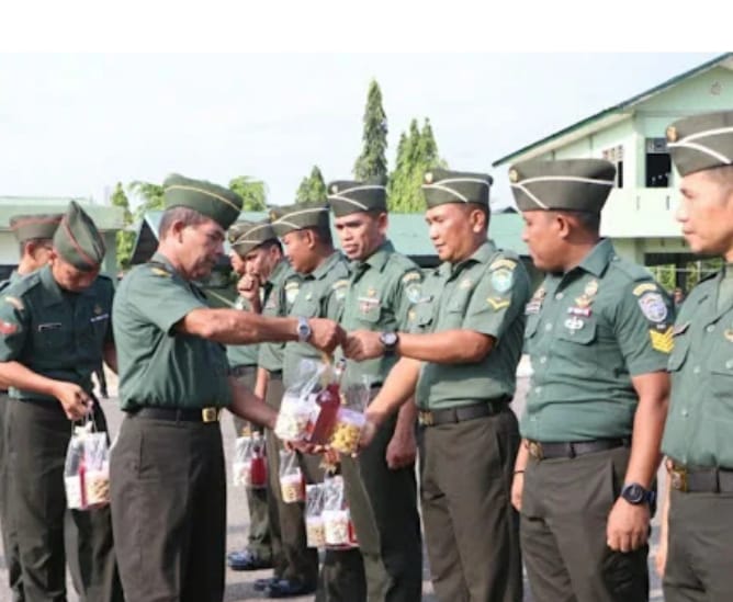 Langsa,Senin (1 April 2024) – Dandim 0104/Aceh Timur, Letnan Kolonel Inf Tri Purwanto, S.I.P, menunjukkan komitmennya dalam mendukung dan mengapresiasi para anggota di bawah komandonya dengan mengadakan acara pemberian Bingkisan Lebaran sebagai bagian dari perayaan Idul Fitri 1445 H.
