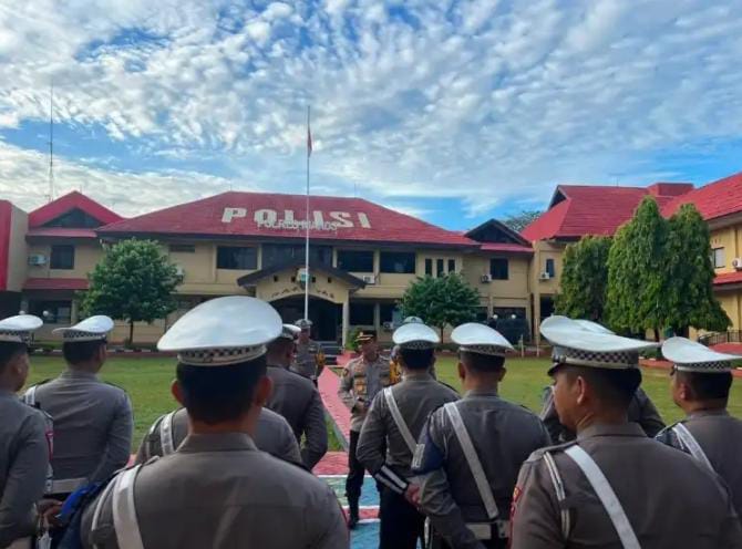 Maros – Kapolres Maros, AKBP Douglas Mahendrajaya, S.H., S.I.K., M.I.K., M. Tr. Opsla, mengumpulkan seluruh personel Polantas (Polisi Lalu Lintas) Polres Maros.
