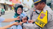 Bagikan Helm dan Snack, Cara Unik Satlantas Polres Mojokerto Kota Gelorakan Keselamatan Lalu Lintas