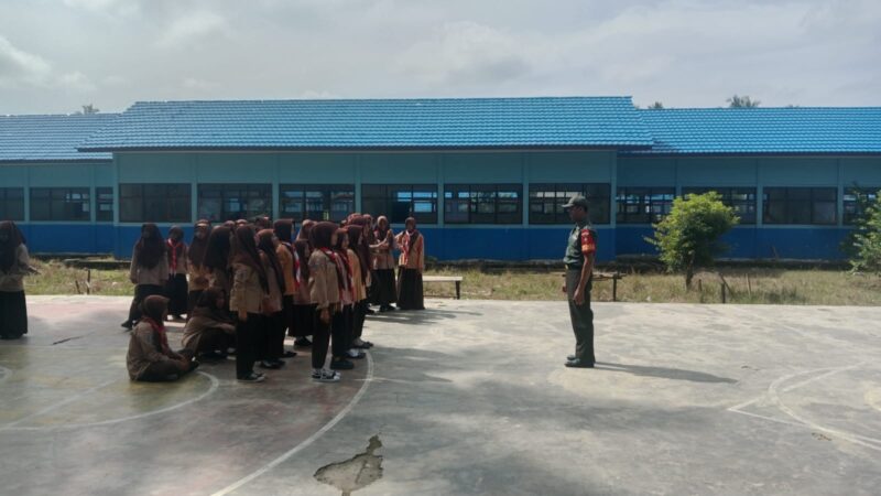 BARABAI – Babinsa Koramil 1002-04/Labuan Amas Selatan, Sertu Juniansyah dan Sertu Selamat, memberikan pembinaan Pramuka kepada para siswa SMPN 9 Hulu Sungai Tengah, Sabtu (08/11/2025).