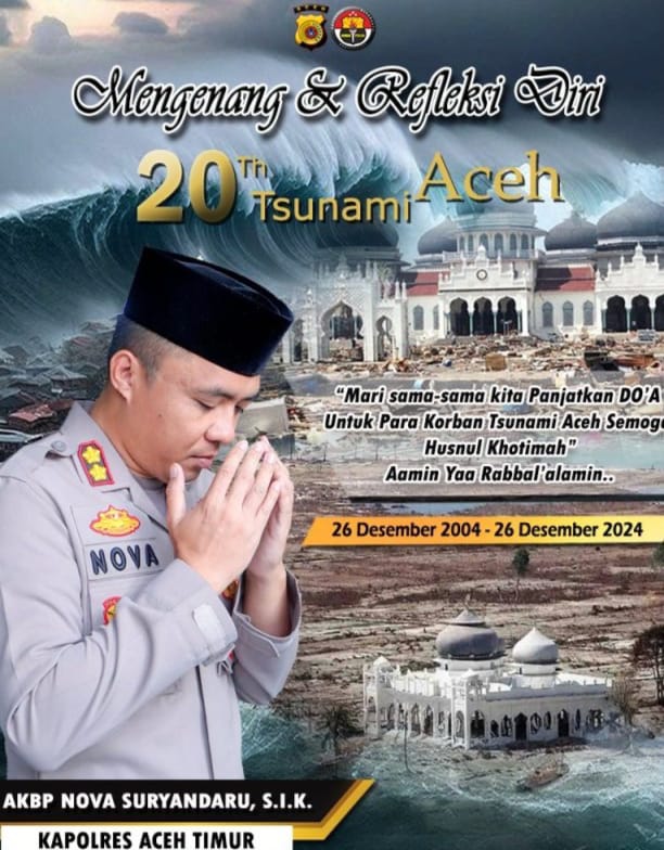 “Selama 3 (tiga) menit bunyi sirine, mari kita bersama-sama berdo’a, mengenang saudara-saudara kita yang menjadi korban tsunami Aceh pada 20 tahun silam,” sebut Kasat Lantas Polres Aceh Timur, Polda Aceh, Iptu Eko Suhendro, S.H. Rabu, (25/12/2024) malam.