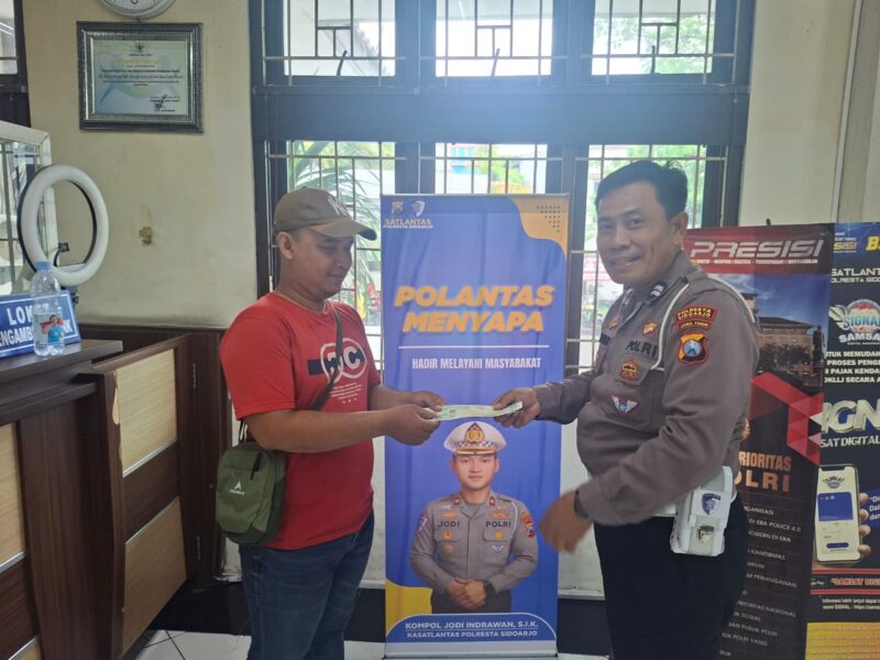 SIDOARJO – Satuan Lalu Lintas (Satlantas) Polresta Sidoarjo terus berinovasi dalam meningkatkan pelayanan publik melalui program “Polantas Menyapa”. Program ini menjadi sarana bagi petugas kepolisian untuk berinteraksi langsung dengan masyarakat, memberikan edukasi, serta menjawab berbagai pertanyaan seputar pelayanan lalu lintas dan pajak kendaraan bermotor.