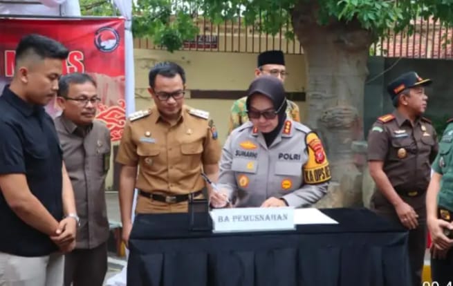 “Pemusnahan miras ini sebagai bentuk pertanggungjawaban dari kegiatan razia yang dilaksanakan untuk mencegah potensi gangguan kamtibmas di wilayah hukum Polresta Cirebon, dan kegiatan ini merupakan yang ketiga kalinya,” ujar Kombes Pol Sumarni, S.I.K, S.H, M.H.