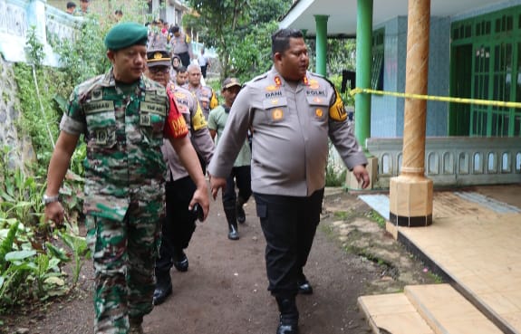 Selain menyerahkan bantuan, Kapolres Pasuruan beserta rombongan juga meninjau langsung lokasi terdampak bencana untuk melihat kondisi warga dan lingkungan yang terkena pergeseran tanah.