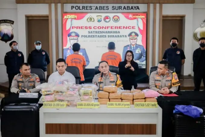 “Puluhan kilogram sabu dan puluhan ribu pil ekstasi tersebut disita dari 3 lokasi yang berbeda,” ungkap Kapolrestabes Surabaya Kombes Pol Pasma Royce, pada Senin (29/4/2024).