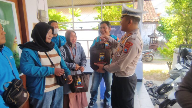 BONDOWOSO – Puluhan pengemudi Ojek Online (Ojol), tukang becak dan sukarelawan pengatur lalu lintas (supeltas) tersenyum riang saat beberapa anggota Satuan Lalu Lintas Polres Bondowoso Polda Jatim menghampiri mereka.