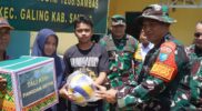 Sambas – Meski cuaca panas terik, semangat Satgas TMMD ke-126 Kodim 1208/Sambas tidak surut dalam melanjutkan pekerjaan rabat beton di Desa Ratu Sepudak, Kecamatan Galing. Dengan penuh semangat, para personel TNI bahu-membahu mengangkut adukan semen menggunakan arko ke titik-titik pengecoran.