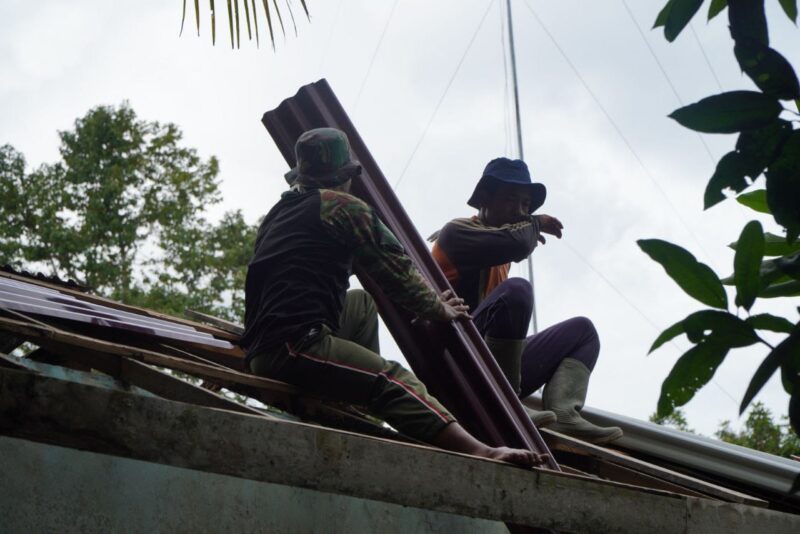 Kali ini, para prajurit bersama warga fokus melaksanakan pekerjaan pemasangan atap pada bangunan MCK (Mandi, Cuci, Kakus) di salah satu sekolah yang menjadi sasaran fisik program TMMD.