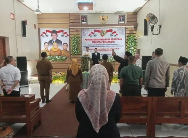 Mojokerto .31/10/2025 Pemerintah Desa Medali, Kecamatan Puri, Kabupaten Mojokerto, resmi melantik tiga perangkat desa baru dalam acara Pengambilan Sumpah dan Pelantikan Perangkat Desa Medali yang digelar di aula balai desa setempat, Rabu (29/10/2025) pukul 09.00 WIB.