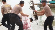 Polri Peduli Lingkungan : Polres Pelabuhan Tanjungperak Bersihkan Pesisir Surabaya Sambut Hari Bhayangkara ke-79